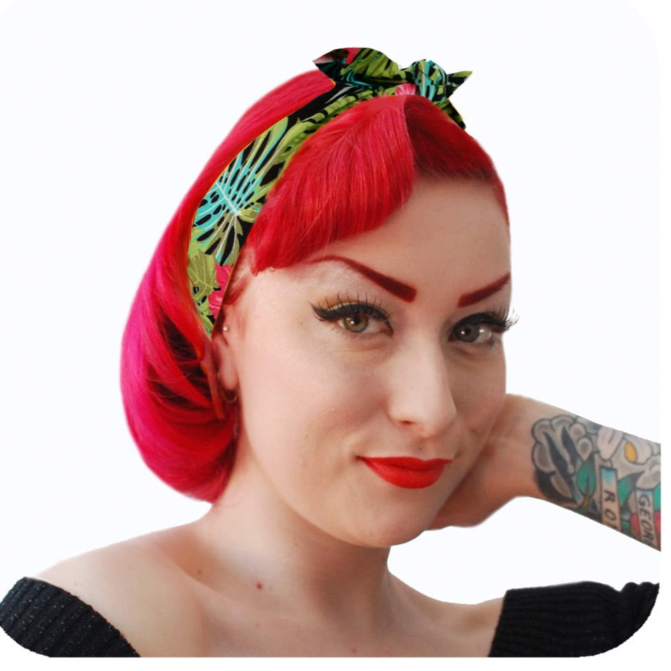 This rockabilly essential is hand made with 100% premium cotton and measures 54x54cm.