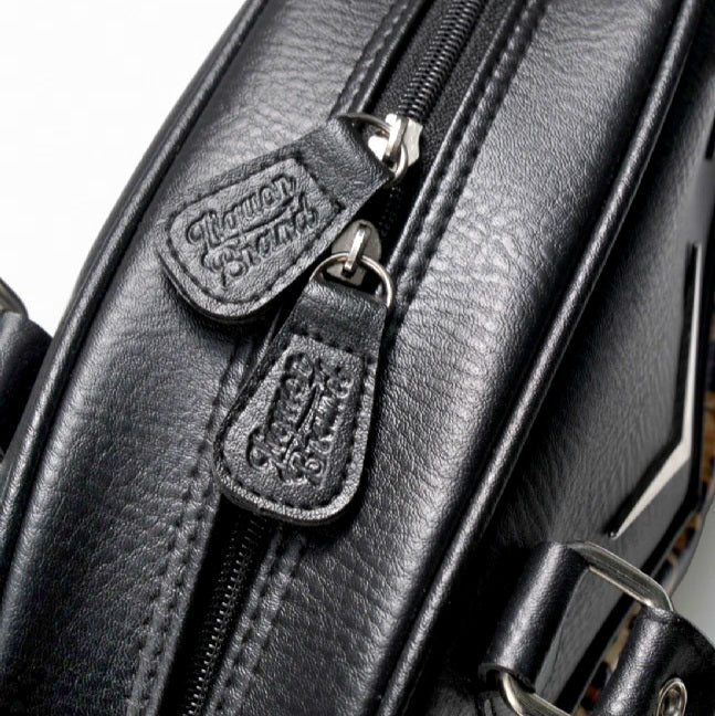 Gorgeous vegan leather rockabilly shoulder bag with Liquorbrand's signature metal chevron detail. Measures 33x20x12cm.