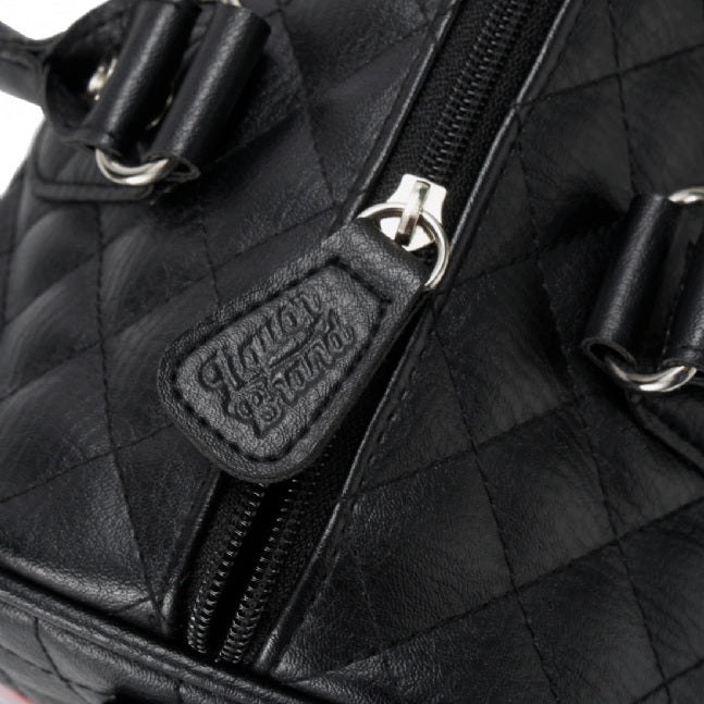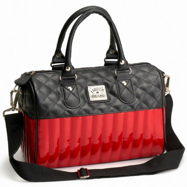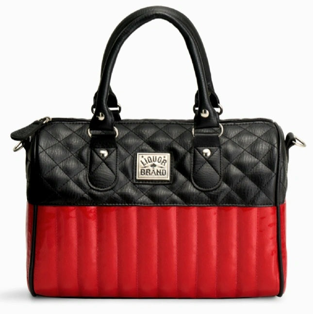 Vegan leather handbag with Liquorbrand's metal logo and detachable shoulder strap. Measures 30x20x15cm.