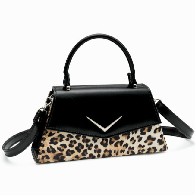 Vintage classic vegan leather handbag with Liquorbrand's signature metal chevron detail. Detachable shoulder strap. Measures 28x15x8cm.