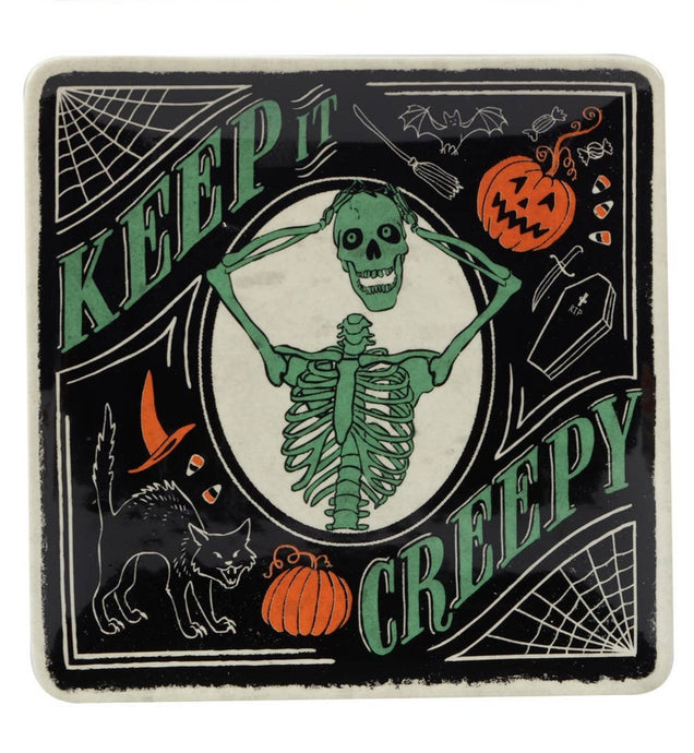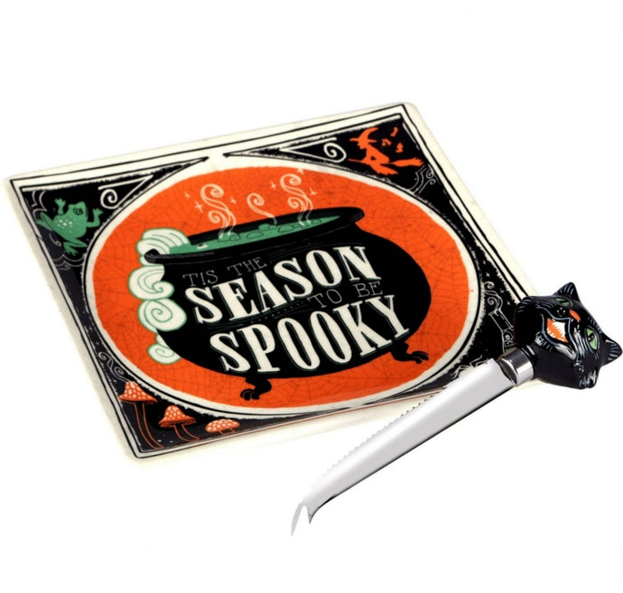 Tis' The Season To Be Spooky Large Cheese Plate With Cat Knife
