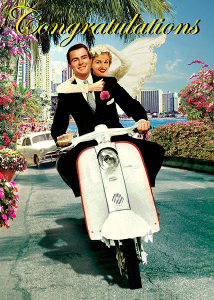 Retro Scooter Wedding Greetings Card