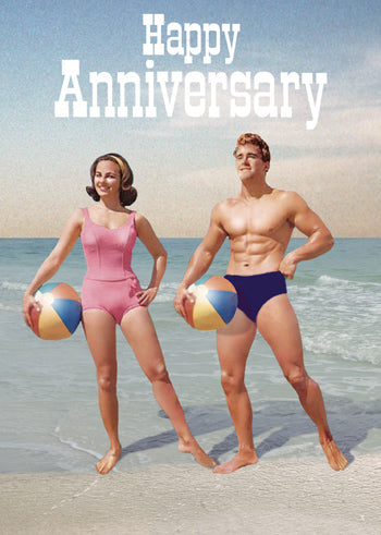 Retro Beach Couple Anniversary Greetings Card