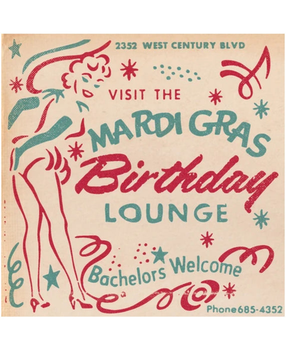Mardi Gras Birthday Lounge Vintage Matchbook Cover Greetings Card