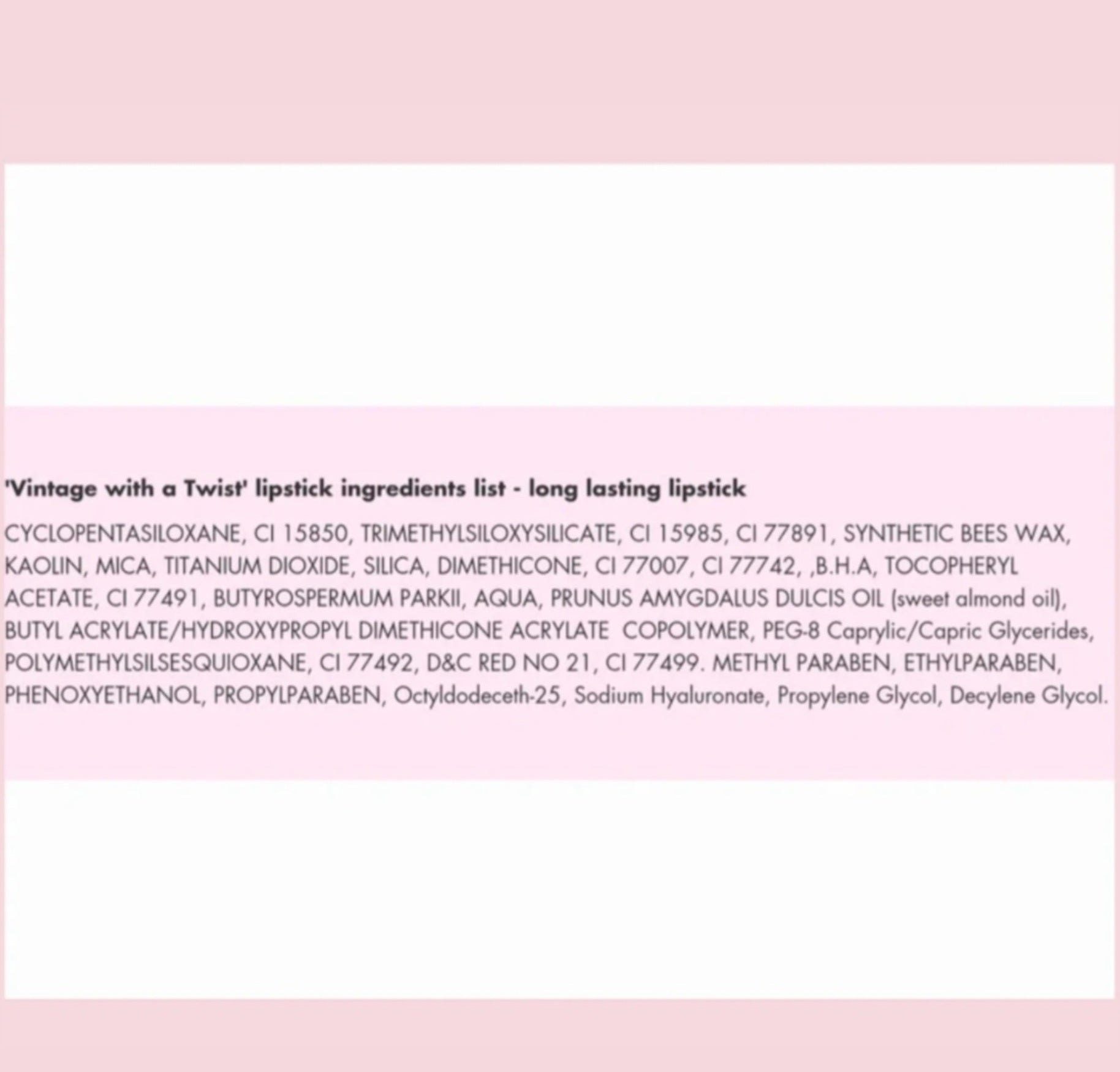 Vintage with a twist. Vintage Grace is a highly pigmented long lasting matt peachy pink with a twist cap to keep the lipstick air tight. Vegan and cruelty free.